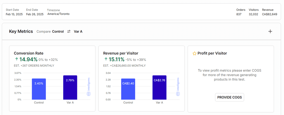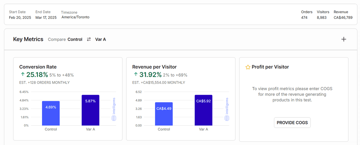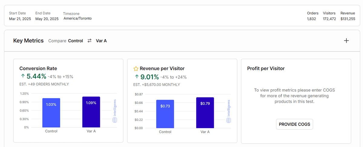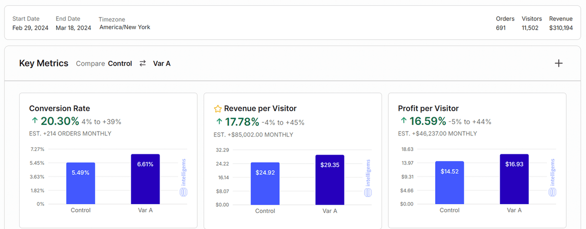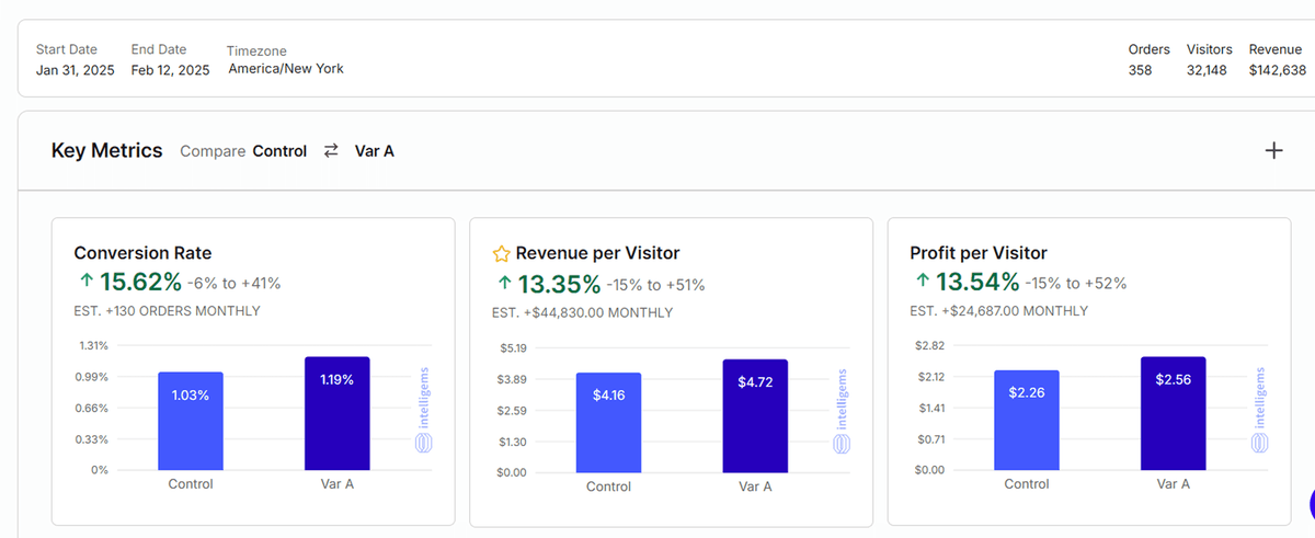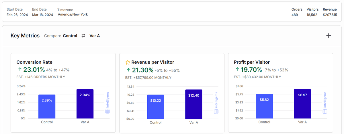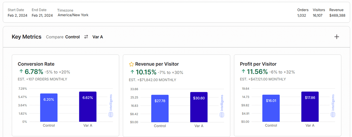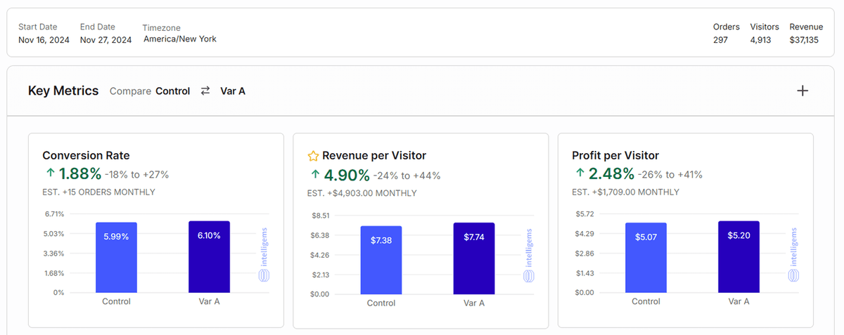 In the first 12 months, we added $4.8M in revenue from A/B Test wins.