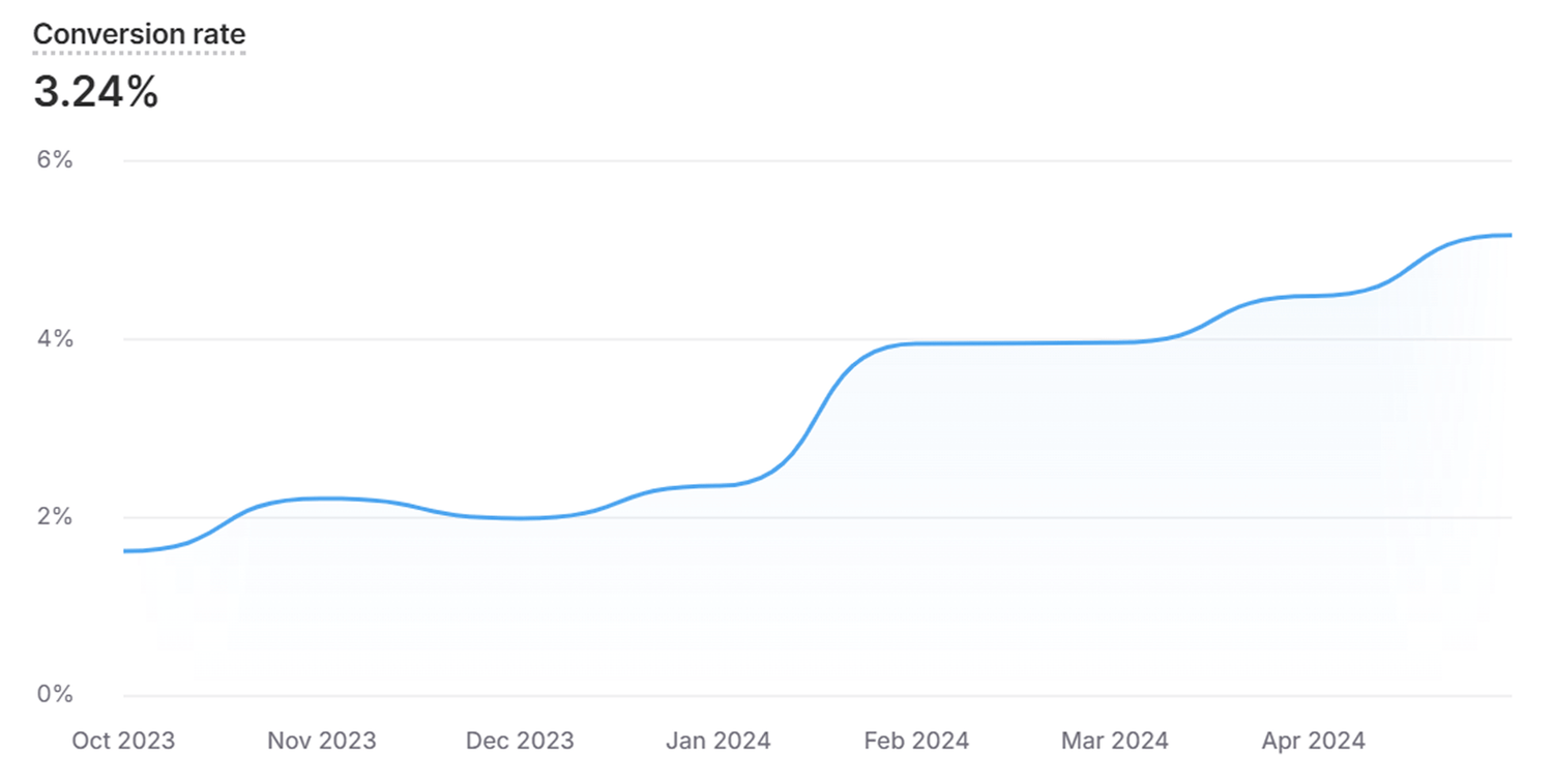 Over a 9-month period, product page Conversion Rate soared from 0.87% to 5.17%.