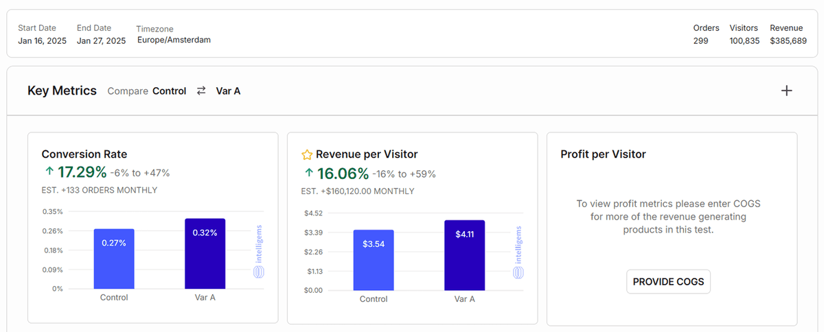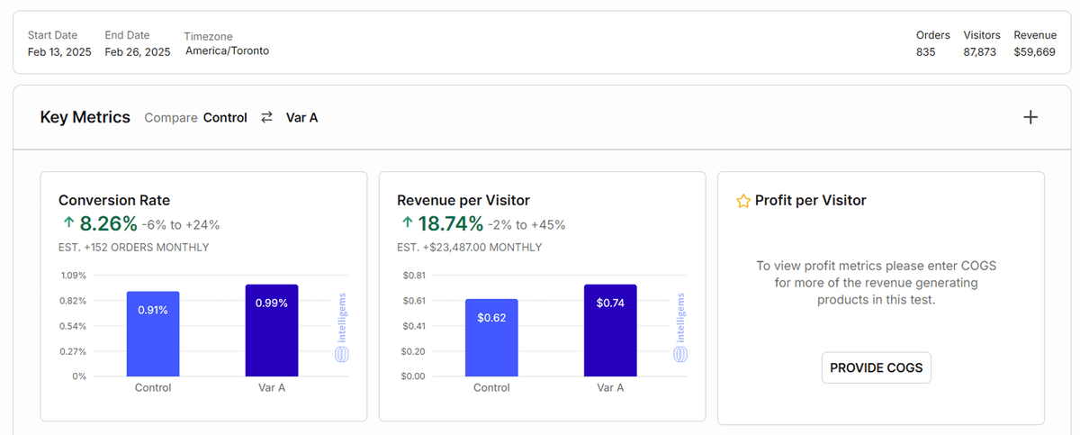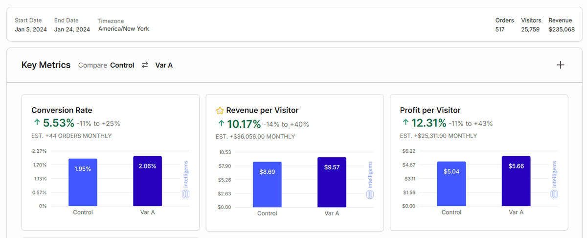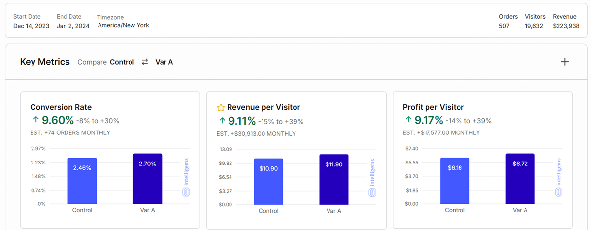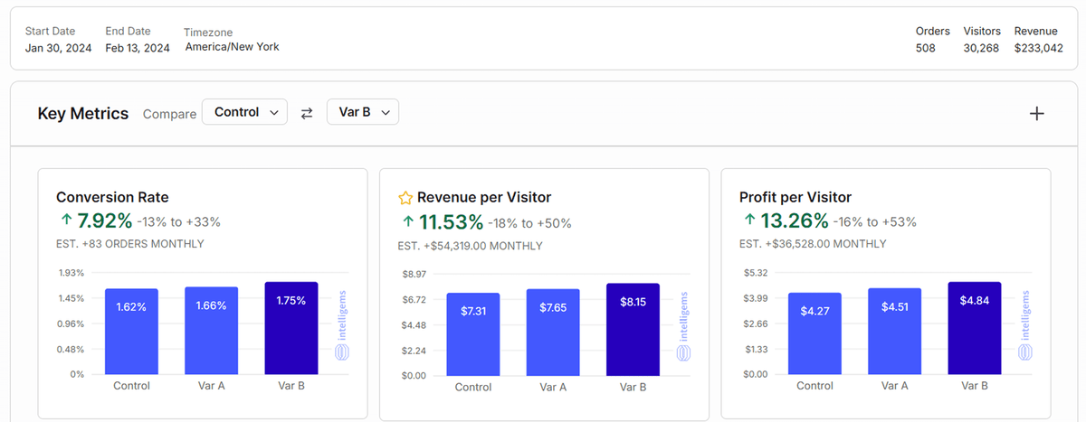 In the first 12 months, we added $4.8M in revenue from A/B Test wins.